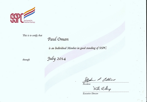 Member: NACE (National Assoc. of Corrosion Engineers), SSPC (Soc. of Protective Coatings)